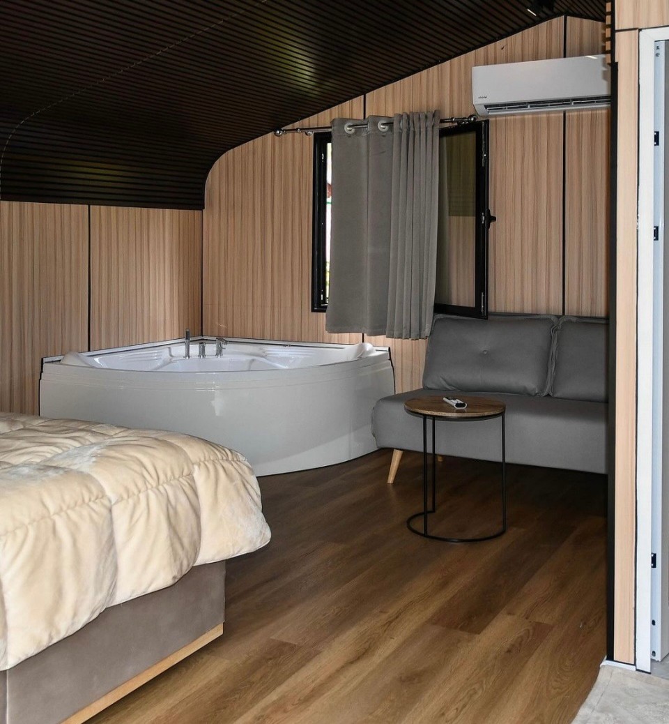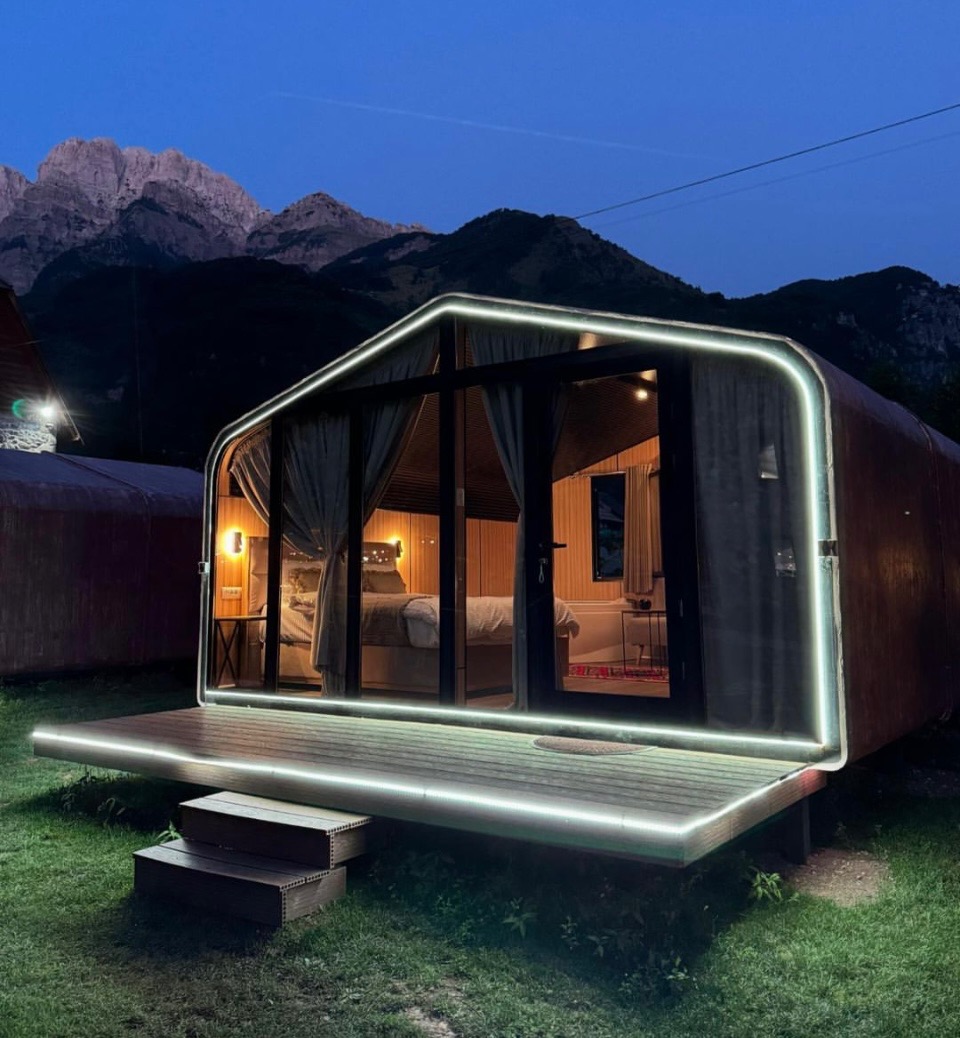 Kompaktní dům s nádechem luxusu, ideální pro privátní wellness či stylový hotelový pokoj. Spojuje moderní design, dokonalou izolaci a promyšlené využití prostoru, díky čemuž nabízí jedinečný zážitek po celý rok. Perfektní volba pro ty, kteří hledají spojení elegance a praktičnosti.